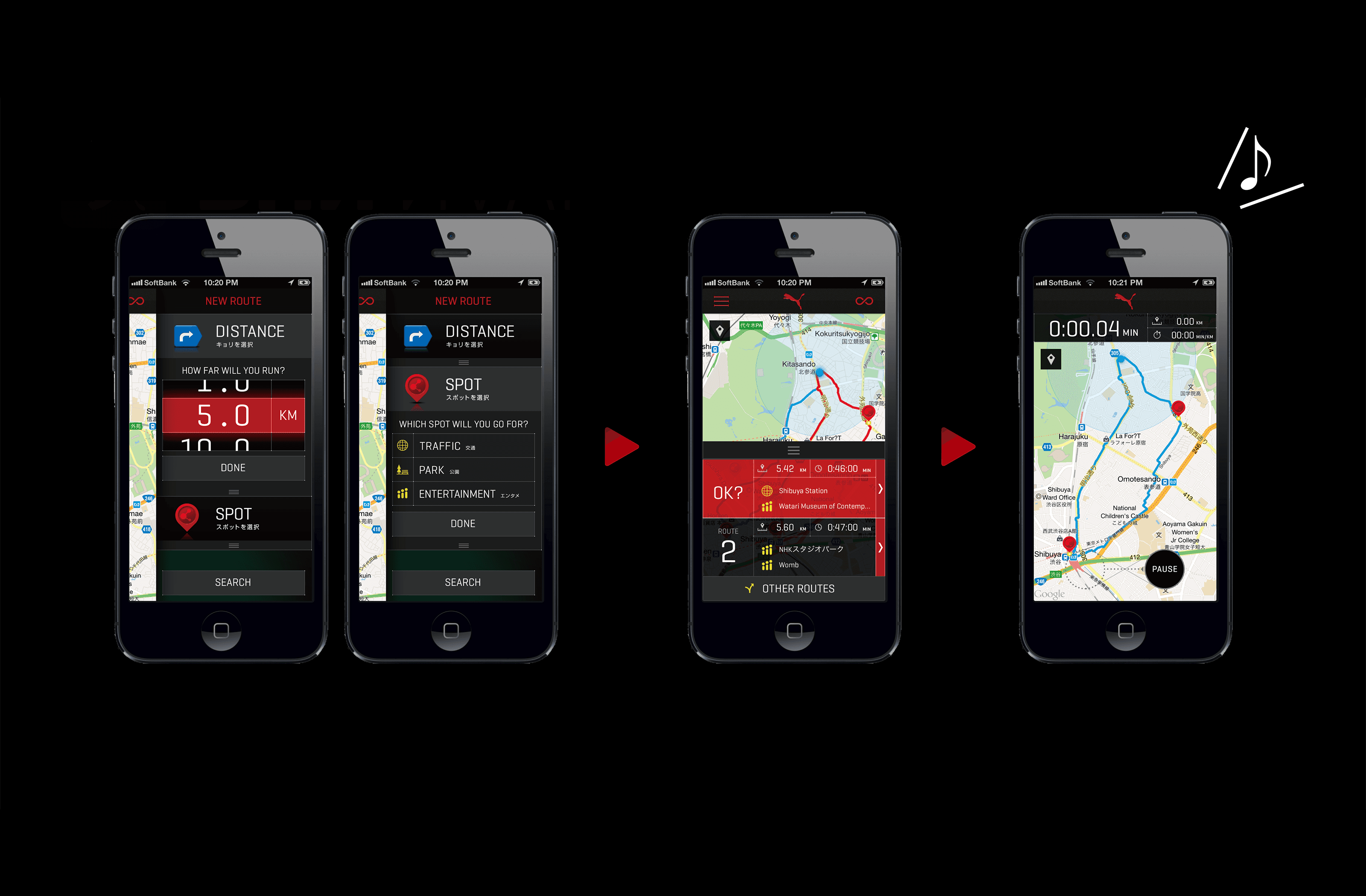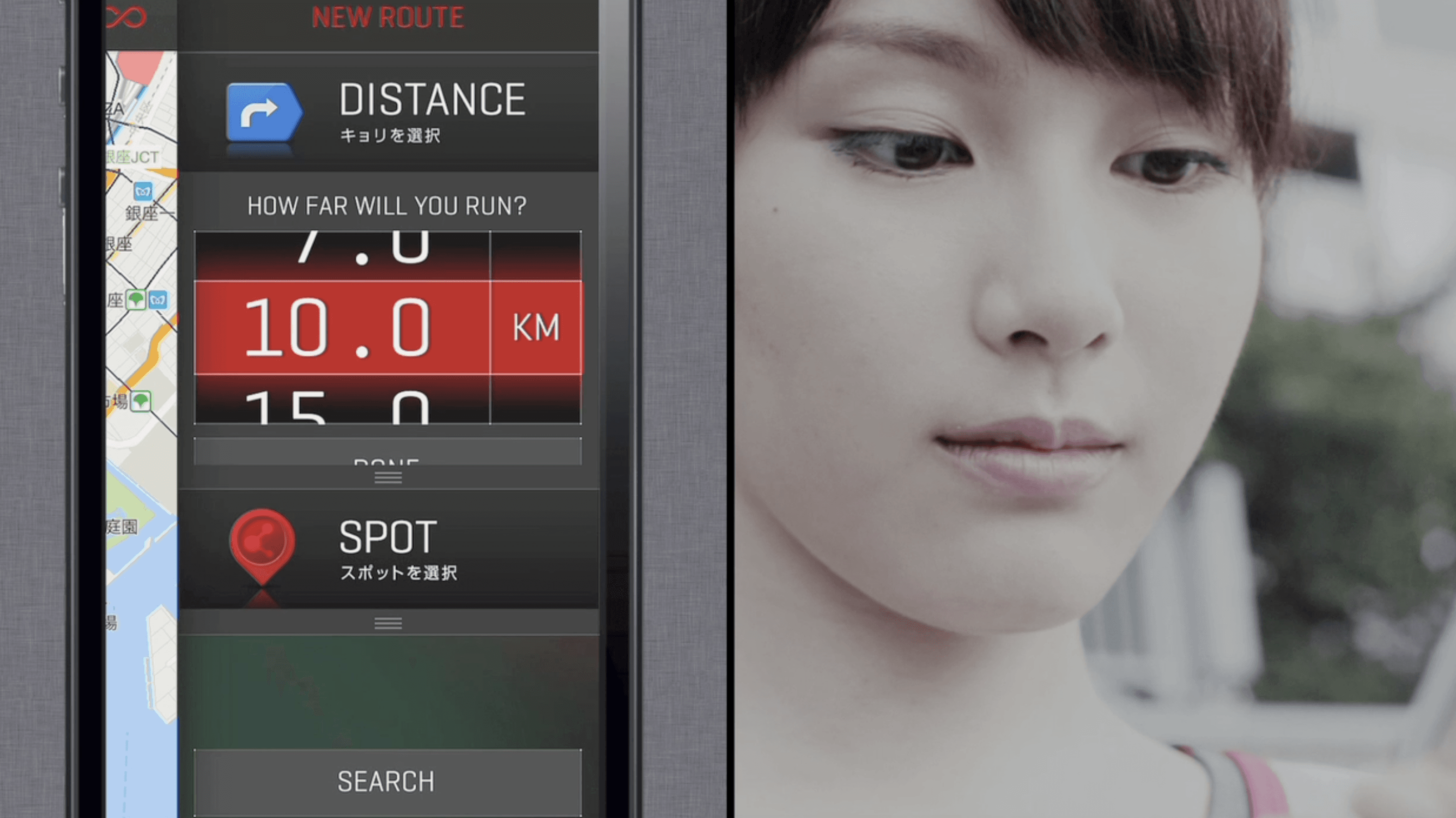 これは日本人ランナーの五感を刺激し、毎日のランニングの楽しさを促進するiPhoneアプリ。「その日の気分」と「走りたい距離」を設定することで、Google MapとGoogle Placesに同期したこのアプリはその日限りの、あなただけのランニングルートを提示します。